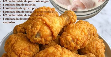 Para el aderezo 15 Piezas de piernas de pollo 2 tazas de leche 1 cucharada de sal 2 tazas de…