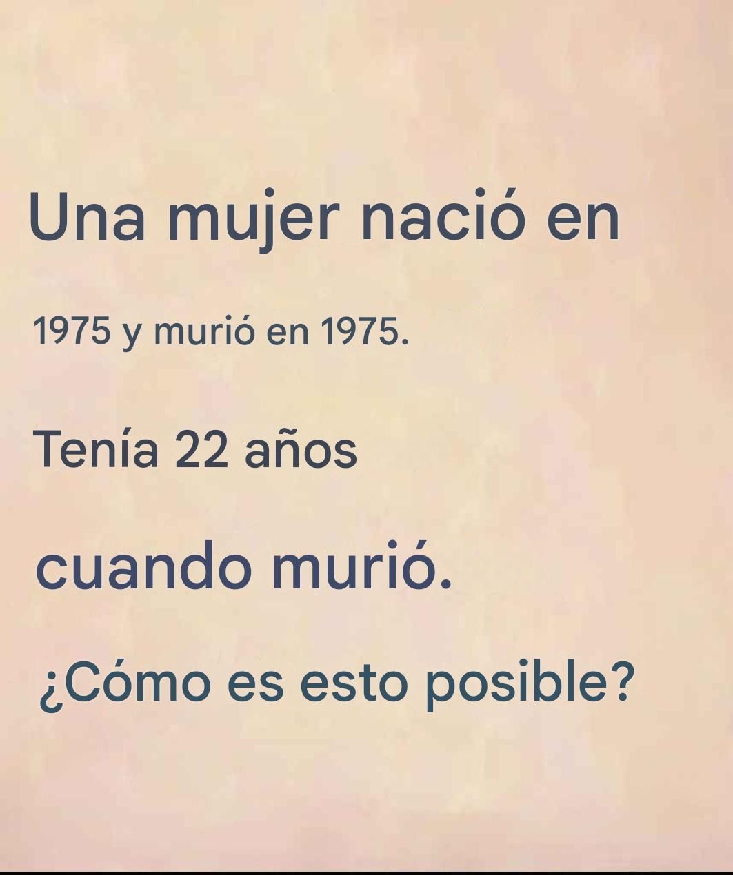 . ¿La clave? **1975 no es una fecha, sino un lugar.** Esta mujer nació *y* murió en la habitación número 1975, con 22 años de vida entre ambos momentos. **Un ejemplo perfecto de pensamiento lateral**, donde hay que atreverse a salirse de lo común para encontrar la solución.