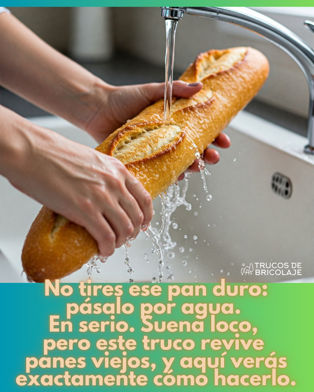 - Moja el Pan: Pasa el pan rancio por agua fría unos segundos. No lo mojes mucho, solo moja un poco la corteza exterior.