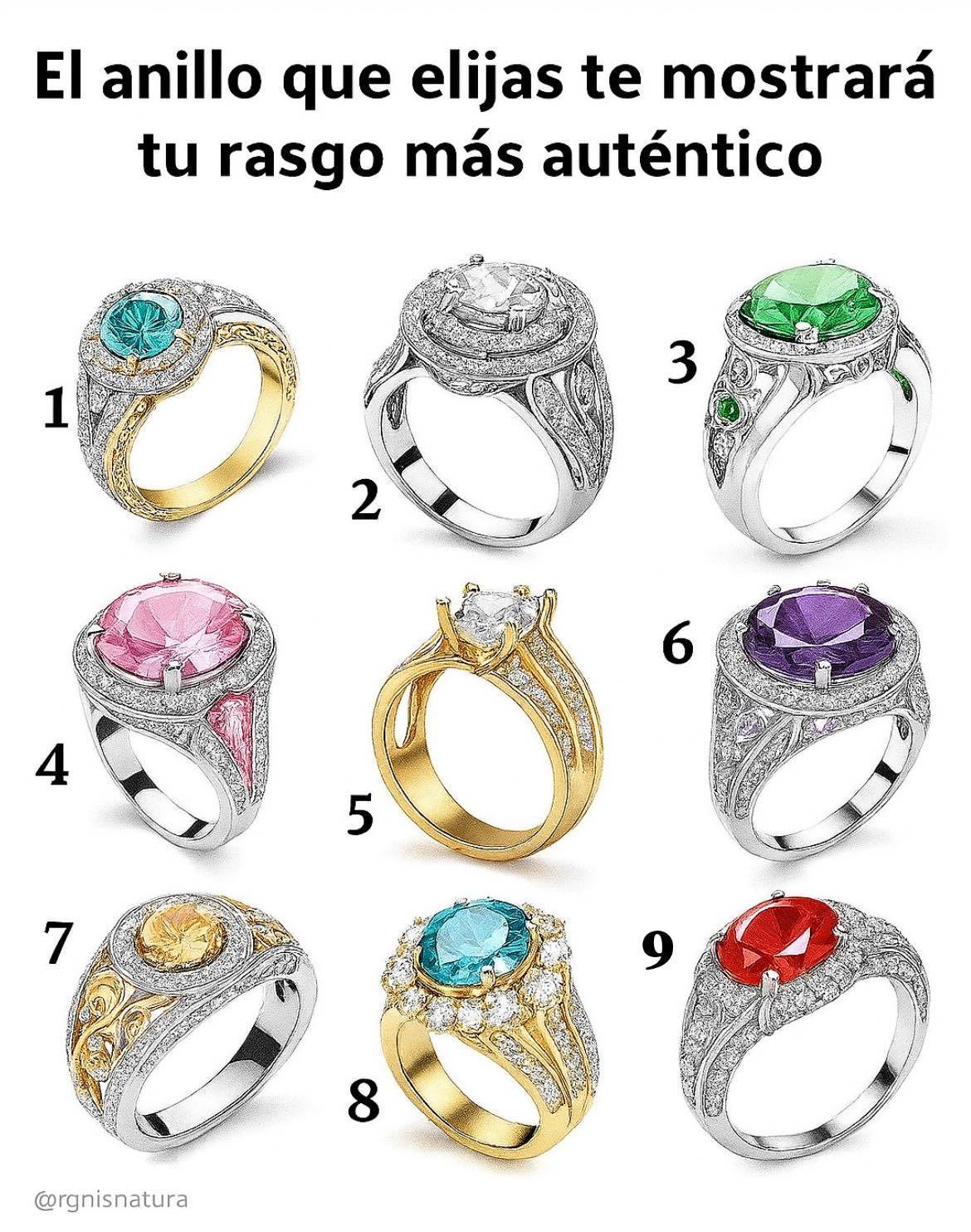 Durante siglos, los anillos se han usado no solo como símbolos de amor o estatus, sino también como un reflejo silencioso del alma. El diseño, la piedra y el estilo que nos atraen instintivamente a menudo reflejan verdades más profundas sobre nuestro carácter. Tómate un momento: observa una colección de anillos únicos en tu mente o frente a ti, y observa cuál te atrae al instante. Esa primera elección podría revelar tu cualidad interior más definitoria.