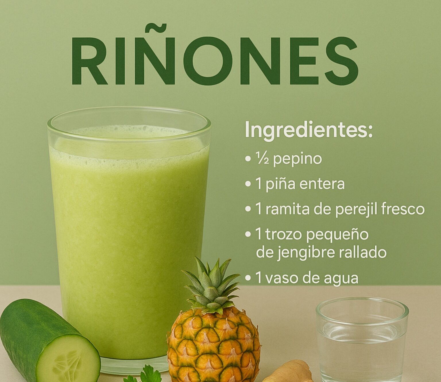 Los riñones filtran toxinas y mantienen el equilibrio de líquidos. Este jugo es depurativo y refrescante.