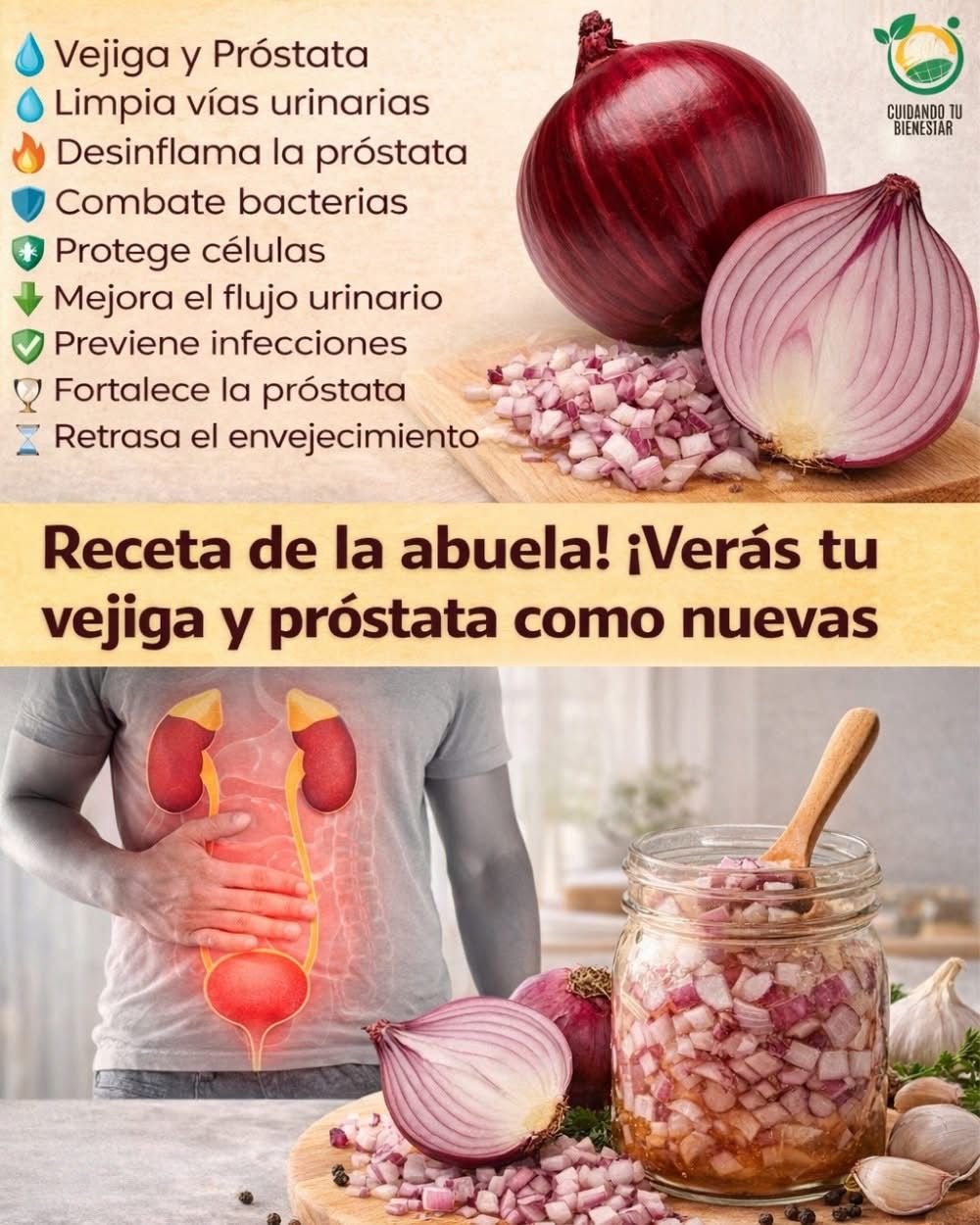 Hoy te compartimos una receta tradicional de la abuela, elaborada con cebolla roja y cáscaras de frutas naturales, ideal para mantener tu próstata y vejiga en perfecto estado.