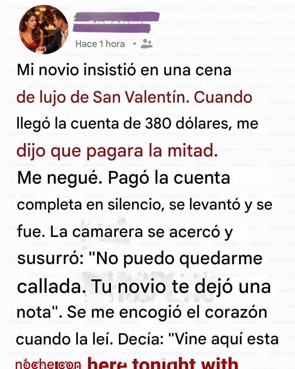 «Esto me resulta extraño», dijo con cuidado, eligiendo las palabras. «Planeaste toda esta noche para San Valentín. ¿Por qué tendría que pagar yo la mitad de la cita especial a la que me invitaste?»