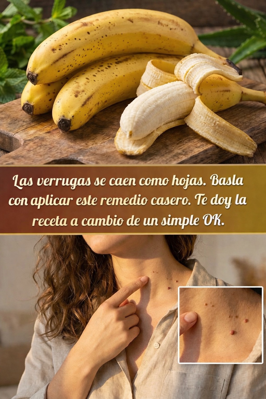 Cáscara de plátano e ingredientes naturales: Un apoyo para el tratamiento de las verrugas.
